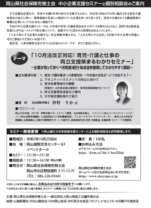 ■テーマ 「10月法改正対応!育児・介護と仕事の両立支援策まるわかりセミナー」